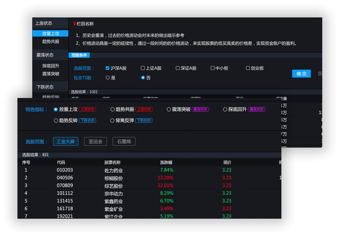 [回答]条件选股通过公式系统的描述和统计功能实现各种技术形态和技术指标的测试和检验,同样它也遵守公式系统的基本格式和法则,但是由于功能的不同,又有些...